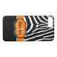This personalised black and white Case-Mate custom iPhone 7 case has a fun zebra print striped background pattern with an orange and black band to add your name, initials, monogram or other text to. This modern and trendy new case makes a chic statement for the hip young fashionista! If you need assistance, email niteowlstudio@gmail.com.