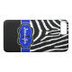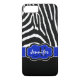 This personalised black and white Case-Mate custom iPhone 7 case has a fun zebra print striped background pattern with a cobalt blue and black band to add your name, initials, monogram or other text to. This modern and trendy new case makes a chic statement for the hip young fashionista! If you need assistance, email niteowlstudio@gmail.com.
