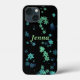 iPhone 13 Mini Case black with green and blue snowflakes. The name can be changed.