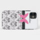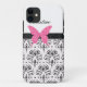 iPhone 5 case with pretty pink butterfly and damask pattern with white accent colour you can change. Customise the monogram with any name or initials. Protects your mobile phone in style and has openings for all your ports and buttons. Designed for ladies or girls and anyone who collects butterfly things.