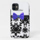 iPhone 5 case with pretty printed blue bow and damask pattern with white accent colour you can change. Customise the monogram with any name or initials. Protects your mobile phone in style and has openings for all your ports and buttons.