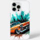 Protect your phone in retro style. This eye-catching case features a 1958 Chevy in orange with a graffiti splash city skyline—designed for car fans who want their tech gear to stand out.