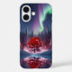 Let this dramatic icy scene be your daily dose of unique romance. Under the flowing Northern Lights, a vibrant red rose stands proudly and beautifully on the frozen lake, reflecting a promise of love and eternity. More than just a design, it symbolises that love and hope can still bloom even in the coldest and darkest moments. Offer this otherworldly beauty to that special person who truly understands the profound romance of life.