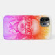 A colourful phone case featuring an artistic sketch of a young girl with large glasses and curly hair. She is adjusting her glasses with one hand and has a gentle smile. The drawing is shaded with a gradient of warm red, orange, pink, and purple hues, giving it a vibrant and playful feel.