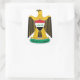 The coat of arms or state emblem of Iraq is a golden black eagle looking towards the viewer's left dexter. The eagle is the Eagle of Saladin associated with 20th-century pan-Arabism, bearing a shield of the Iraqi flag, and holding a scroll below with the Arabic words جمهورية العراق (Jumhuriyat Al-`Iraq or "Republic of Iraq").