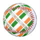 Design on baseball has the green, white, and orange Irish flag with the word IRELAND below in the colours and style of the flag. Design is tiled for best aesthetic. A white area of squiggly squares holds a spot for your name for a personalised touch. If you need a customised gift, just add someone else's name. Tiled flag fills the entire baseball.