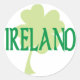 This patriotic Irish design features the caption "Ireland" in large green text on a light green shamrock background.