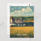 A vintage-style postcard of Ireland, featuring muted tones and nostalgic charm, showcases rugged coastlines, rolling green hills, and traditional stone cottages, capturing the timeless beauty of the Irish west.