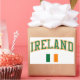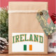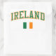 This item has IRELAND in a collegiate style in an arc over the Irish flag. The design uses the Irish colours of green, orange and white. The national flag of Ireland – frequently referred to as the Irish tricolour – is a vertical tricolor of green (at the hoist), white, and orange.