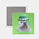 Shown is a photographic image of a white English bulldog wearing a green derbey against a green backing with the text, "Erin Go Bragh".