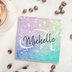 Teal iridescent glitter coaster