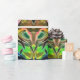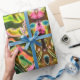 This beautiful wrapping paper is a striking iridescent abalone sea shell pattern. There are shades of blue, green, yellow, pink and orange. It reminds me of butterfly wings. No matter what it reminds you of, it's definitely a very striking design and perfect for all occasions.