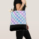 Iridescent Pink and Blue Gingham Pattern with Monogram Tote Bag