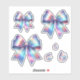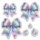 This elegant vinyl sticker set showcases iridescent bows in various sizes with shimmering rainbow colours and luminous teardrop shapes. The stylish, bow-themed sticker will add a touch of flair to anything you adorn with them.