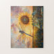 Iridescent Dragonfly Rustic Sunflower Jigsaw Puzzle