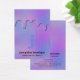 The background of our iridescent foil hair clips display blends shades of pink, purple and blue in an artistic abstract pattern... perfect for creatives who design jewellery or hair accessories as their business or side hustle. Holographic metallic drips taken from the same pattern have an embossed look as they border the top of the card. The embossing is a graphic technique that is printed on the paper, rather than being an actual physical element overlaid on the card. On front of the card are two printed lines to guide your cutting of the slits to hold the hair clips and, below that, your business name and boutique or salon services. Additional details about your business, including phone number, address, email address, and social media names can be personalised on the back of the card. Just replace the sample text with your own wording on the personalisation template.