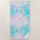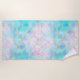 Geometric cube shapes are layered in a pattern and coloured in alternating shades of pastel blue, pink and purple that gives it an iridescent glass look. The shapes are outlined in faux gold glitter.