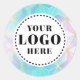 The background of these product stickers are designed in a chic, feminine geometric pattern outlined in faux gold, coloured in alternating shades of pastel blue, pink and purple that gives it an iridescent glass look. This sticker features a template where you can add your own logo to the centre of the sticker, giving your logo a pastel geometric border.