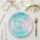 Geometric cube shapes are layered in a pattern and coloured in alternating shades of pastel blue, pink and purple that gives it an iridescent glass look. The shapes are outlined in faux gold glitter.