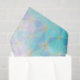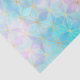 Geometric cube shapes are layered in a pattern and coloured in alternating shades of pastel blue, pink and purple that gives it an iridescent glass look. The shapes are outlined in faux gold glitter.