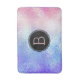 Modern design, iridescent glass ombre background. Black circle with optional monogram.