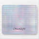 A digital pattern featuring a subtle iridescent grid over a soft pastel background, evoking a futuristic aesthetic.