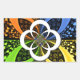 Orange, Blue, Green, Yellow: These bright and saturated colours fill the four petals, providing strong contrast and creating a visually striking effect against the darker background.