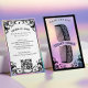 Elevate your hair salon or stylist brand with our Iridescent holographic vintage hair salon business card, featuring a hand-drawn ornate scroll frame set against a faux iridescent holographic background for a striking, tarot-inspired look. The front showcases a vintage comb centered within the scroll design, leaving space for your company name and tagline, while the reverse displays elegant flourishes, an iridescent holographic frame, and your contact information with a QR code for easy bookings. The dramatic blend of black and paired with shimmering holographic accents creates a sophisticated gothic aesthetic, perfect for hair salons, hair stylists, barber shops, and beauty professionals seeking a unique, mystical, and vintage-inspired presentation. Design and illustration created by ©Moodthology Papery.