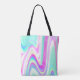 This iridescent marbled holographic liquid swirl design features a mesmerising blend of vibrant neon and pastel colours. The image is trippy and distorted, with a captivating light diffraction effect, reminiscent of the psychedelic 80s-90s vaporwave style.