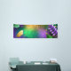 Textural iridescent mardi gras background with spots of purple, yellow and green, decorated with fluffy feathers and shiny beads. Mardi gras holiday.