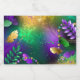 Textural iridescent mardi gras background with spots of purple, yellow and green, decorated with fluffy feathers and shiny beads. Mardi gras holiday.