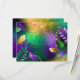 Iridescent mardi gras background with beads RSVP card