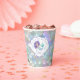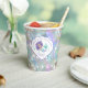 Make waves at your mermaid-themed celebration with this dazzling birthday paper cup! Covered in a watercolor-style mermaid scale pattern in shades of purple, teal, and seafoam green, this sparkling design adds a magical underwater shimmer to any present. The front features a custom label shaped like a clam shell, perfect for personalising with your child’s name and birthday details. Ideal for birthday gifts, party favours, or matching themed supplies, this pattern brings the ocean fantasy to life — one splash at a time! Search ID1144 to see coordinating products in this design set.