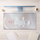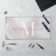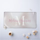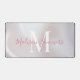 Personalise this elegant white initial and pink script name monogram with iridescent pearl background desk mat.