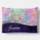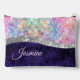 iridescent purple silver faux glitter monogram Accessory Pouch. It is designed with elegant girly silver and iridescent faux glitter in unicorn, rainbow, pink and aqua.