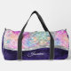 iridescent purple silver faux glitter monogram Duffle Bag. It is designed with elegant girly silver and iridescent faux glitter in unicorn, rainbow, turquoise, pink,fuchsia and aqua..