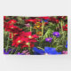 A riot of colourful spring flowers in bright red, blue, purple, pink, and orange.