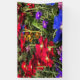 The focus is on a crimson flower in the foreground, with a rainbow of blooms surrounding it.