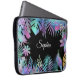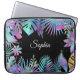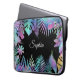 Iridescent Tropical Leaves, DIY White Name, Black Laptop Sleeve