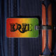 IRIE luggage tag with ice, gold and green background.
