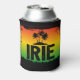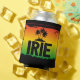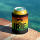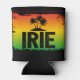 Chillout with this cool can cooler printed with the Jamaican patois phrase IRIE, with black silhouette palm trees over a rasta flag coloured sunset