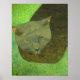 This art poster features a reprint of a fabric marker drawing of Irina the cat sitting on the grass.