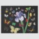 IRIS AMONG COLORFUL BUTTERFLIES Black Floral Tissue Paper