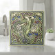 This Art Nouveau tile design features a long-haired female figure surrounded by arrangement of irises and flowing botanical curves. The palette blends sage green, royal blue and touches of violet for a beautifully layered, painterly look. Sweeping tendrils give the composition its signature Art Nouveau movement and grace. Richly detailed yet soothing in tone, this design captures the enchanting, nature-driven artistry of the era. Search ID1193 to see other tiles in this unique design set. Note: design may contain generative content