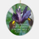 A photo of a purple iris on a blurred green background with text "A flower does not compete to the flower next to it. It just blooms"