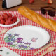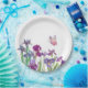 Iris flowers Birthday Party Paper Plates with text and watercolour