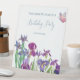 Iris flowers Birthday Party Pedestal Sign with blue text and watercolour