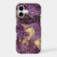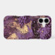 Warm purples with golden accents in a rich layering of fluid paint drips and artistic splashes.