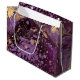 Warm purples with golden accents in a rich layering of fluid paint drips and artistic splashes.