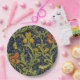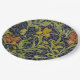This design features a print of a fabric design created by the British artist William Morris (1834–1896), who is associated with the Arts and Crafts Movement. It depicts blue and orange iris flowers in an elegantly symmetrical pattern. The flower is named after Iris, who was the Greek goddess of the rainbow and a messenger for the Olympian gods, carrying messages down to humanity. The leaves and stems of the iris plants are depicted in blue and green. There are a few yellow birds perching on some of the plants' foliage. The original pattern was designed by William Morris in 1887.